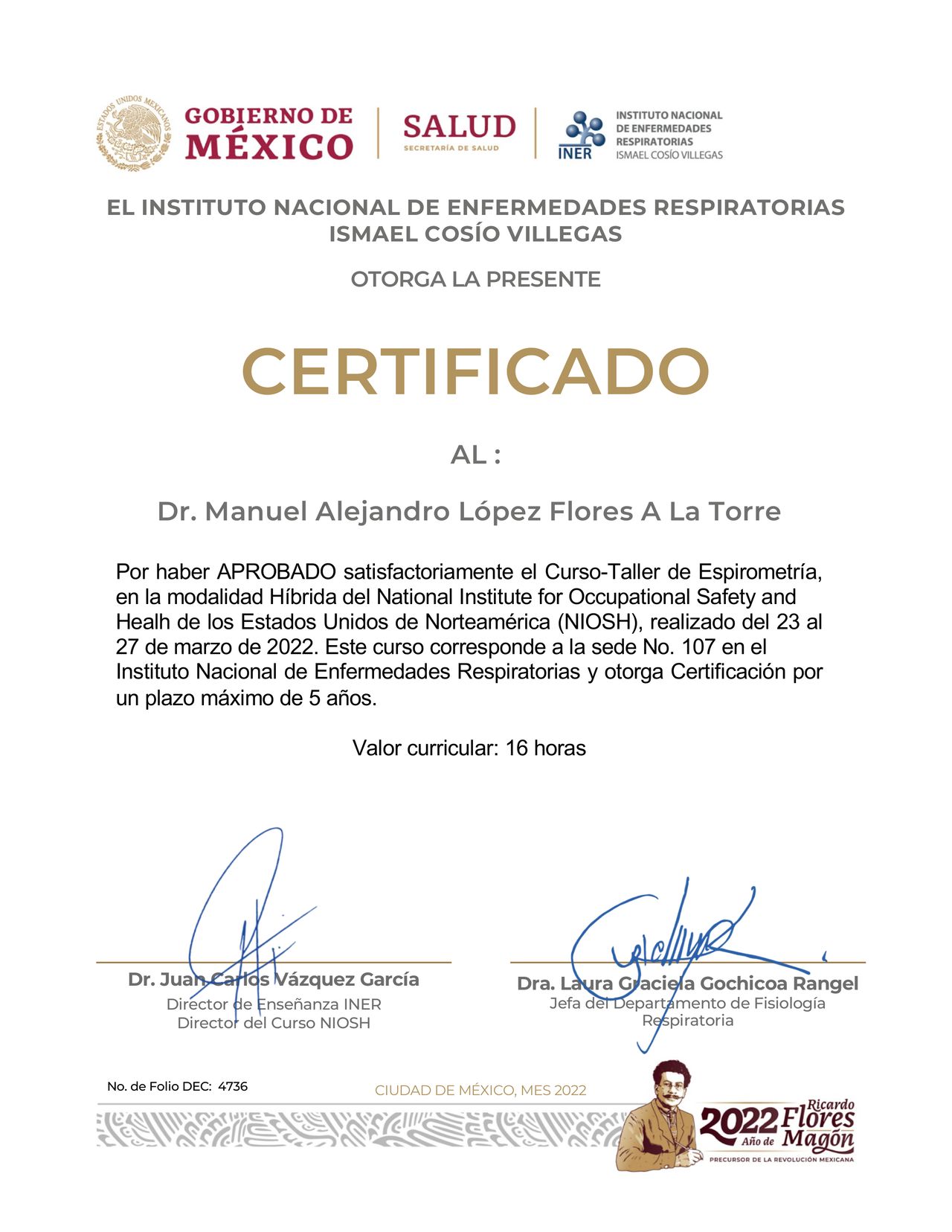 Médico egresado de la Universidad Panamericana, especializado en Neumología por el Instituto Nacional de Enfermedades Respiratorias “Ismael Cosío Villegas”.